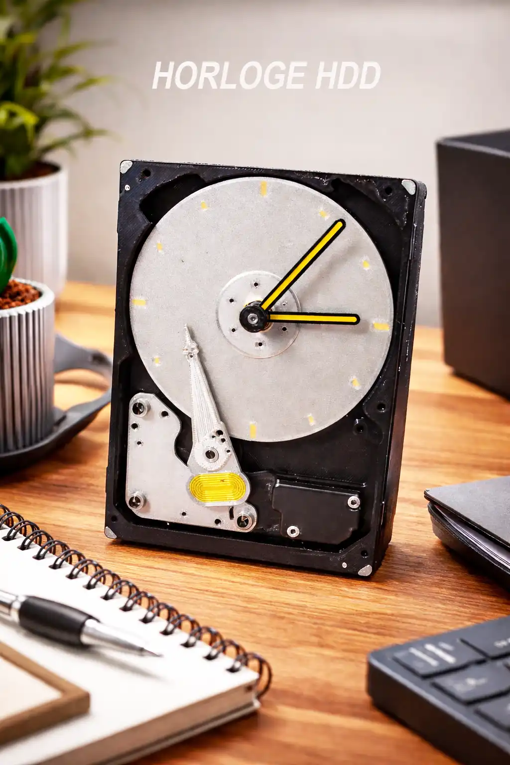 disque dur en véritable pièce de design avec cette horloge unique. Son esthétique, mêlant mécanique et modernité, en fait un objet décoratif remarquable sur un bureau ou une étagère. Chaque détail est travaillé pour rappeler l’ingénierie informatique tout en offrant une touche artistique. Cette horloge attire le regard, déclenche la conversation et apporte une note originale à ton intérieur. Parfaite pour les passionnés de technologie, les créatifs ou toute personne cherchant une décoration vraiment différente. Indémodable, précise et totalement distinctive.