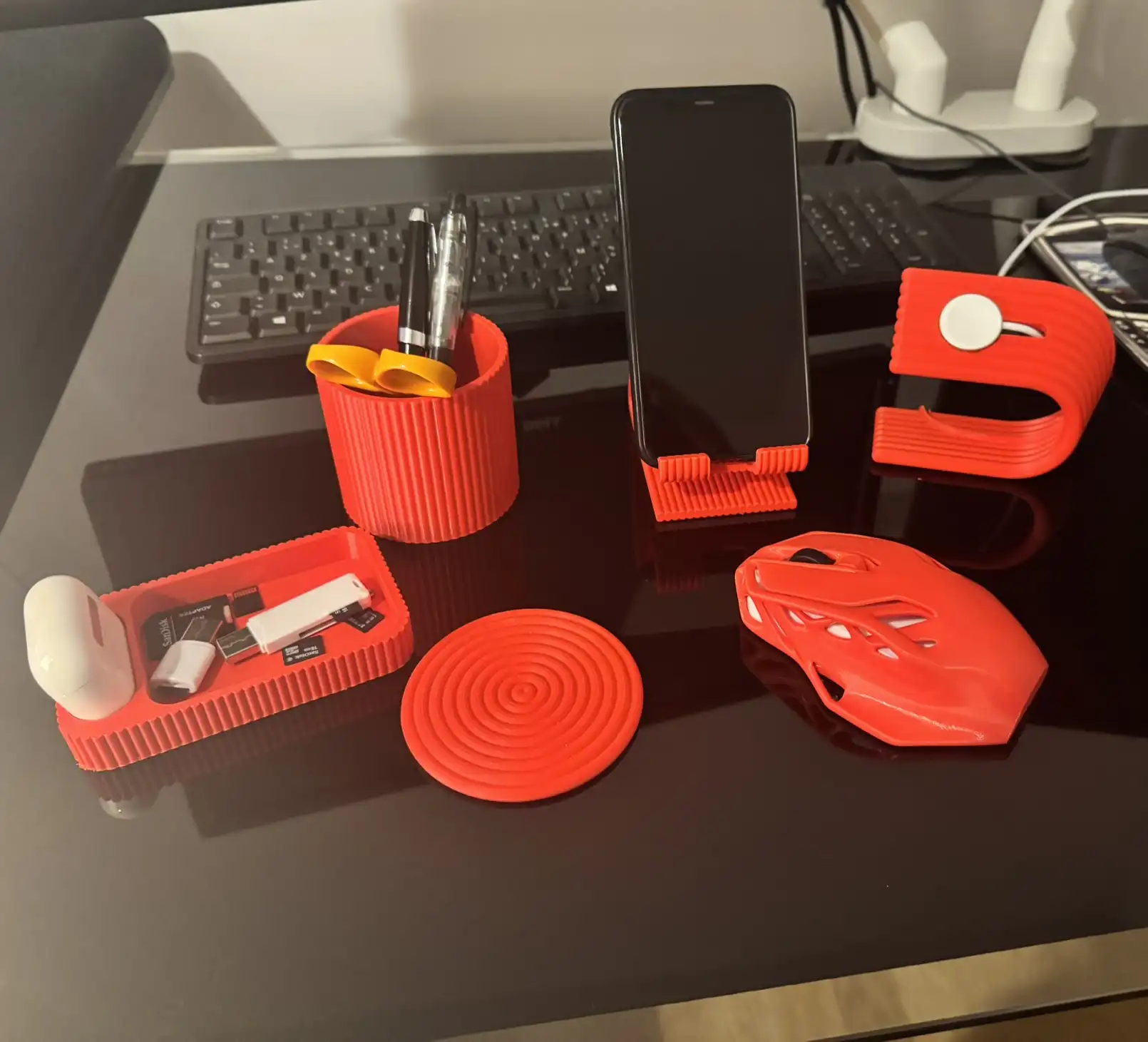 Offrez-vous ce set de bureau imprimés en 3D avec un matériau eco friendly PLA. Design moderne et fonctionnel.